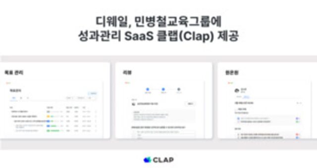 디웨일, 외국어교육 전문기업 ‘민병철교육그룹’에 상시 성과관리 솔루션 ‘클랩(CLAP)’ 제공 성과관리 솔루션 스타트업 디웨일(대표 구자욱)은 외국어교육 전문기업 ‘민병철교육그룹(대표 민병철, BCM)에 자사의 SaaS 기반 상시 성과관리 서비스 ‘클랩(CLAP)’을 제공한다고 18일(목) 밝혔다.1980년에 설립된 민병 철교육그룹은 어학원과 출판위주의 영어교육사업을 시작으로 2005년 모바일 중심 교육 서비스로 영역을 확대해 교육과 기술을 결합한 2024.07.18