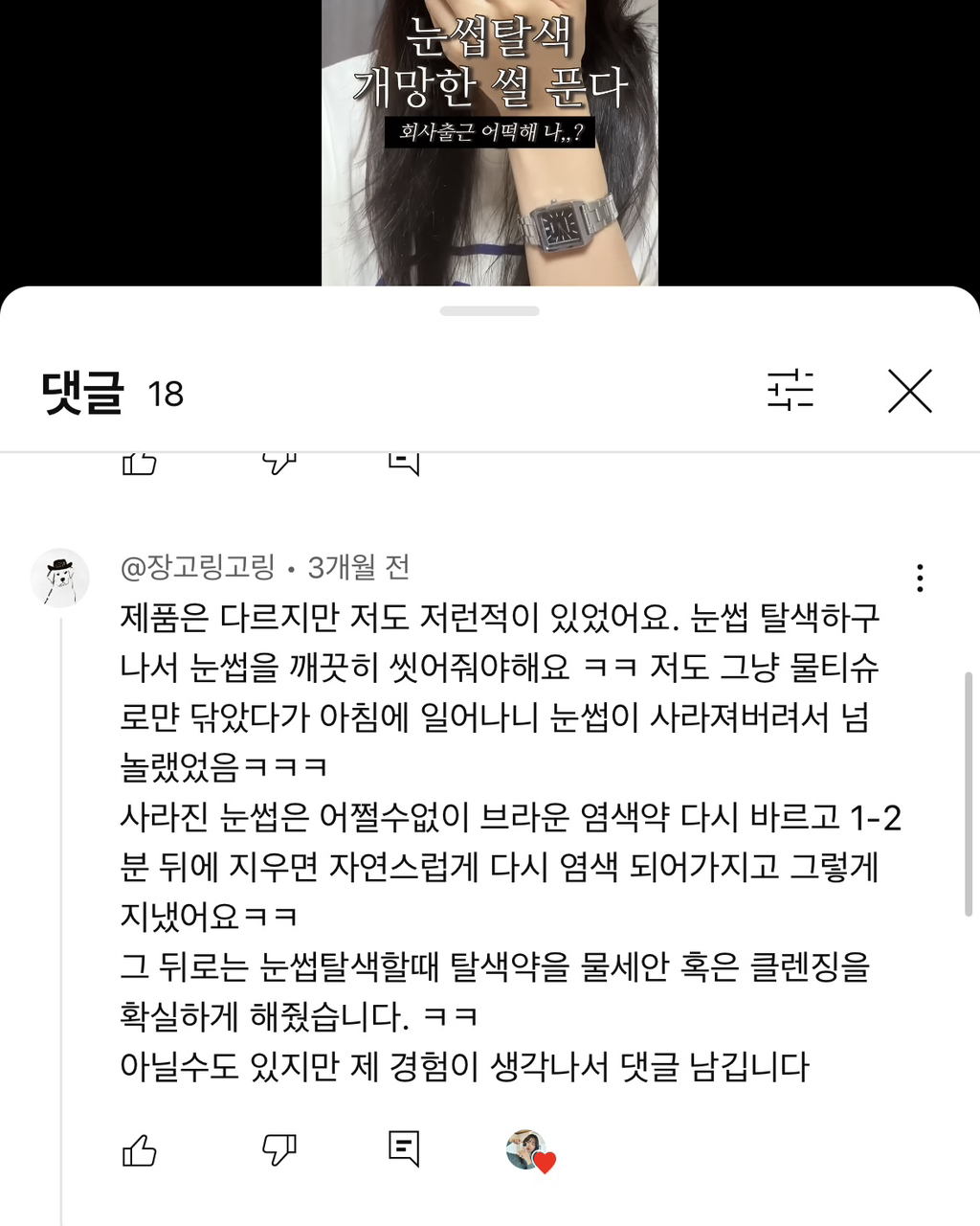 눈썹 탈색을 도전한 유튜버