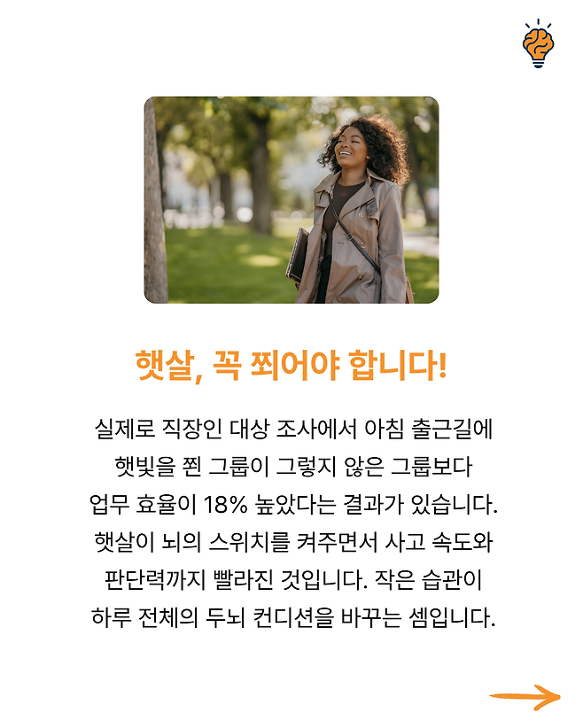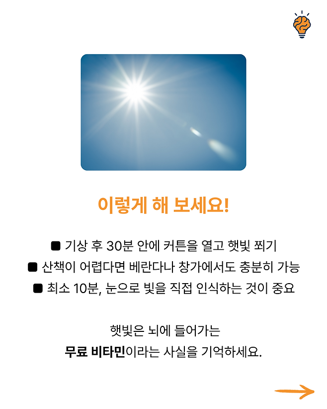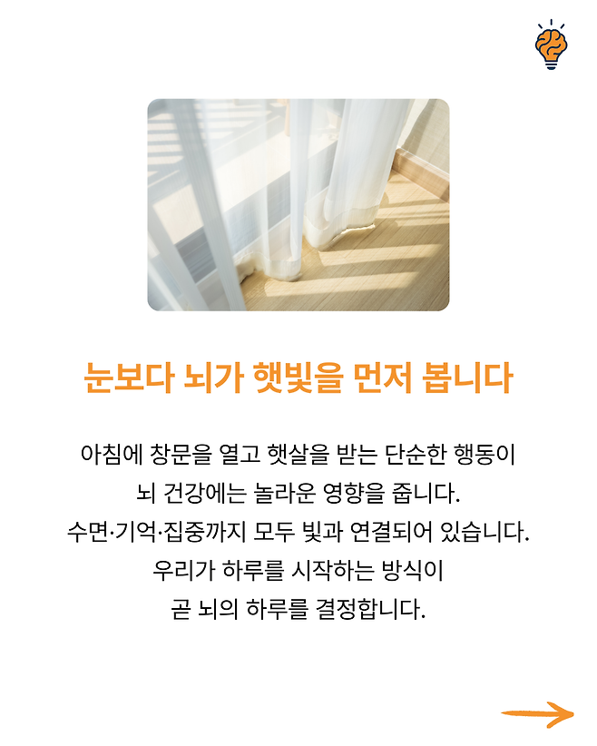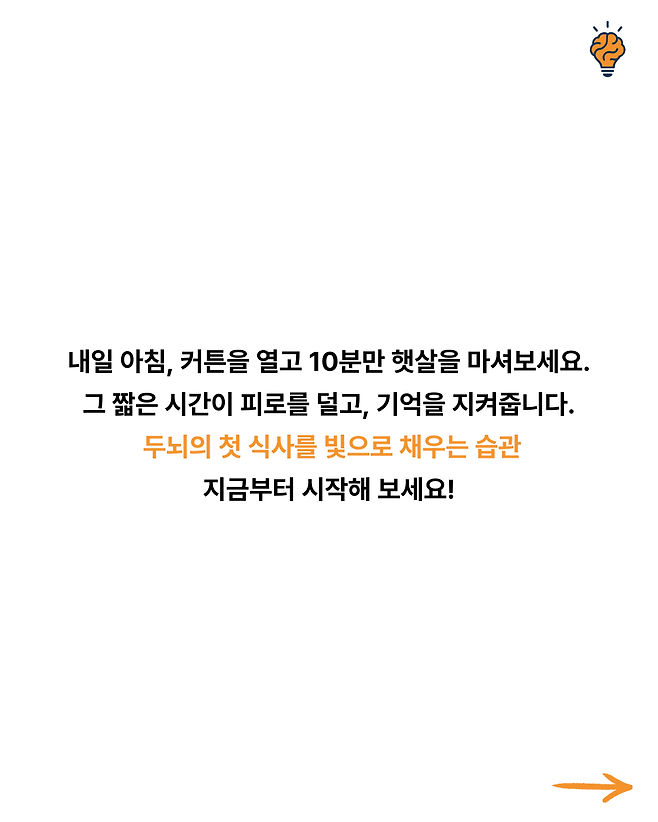 “아침 햇빛” 뇌가 가장 좋아하는 보약입니다! 뇌생각 2025년 09월 17일 오전 08:09 조회수 Post Views: 4 공유 글씨 축소 A 글씨 크기 초기화 글씨 확대 뇌를 살리는 최고의 방법, 하루 10분만 “이것” 읽어보세요! 단순 계산이 헷갈린다면? 뇌 건강 적신호입니다! 몇 개나 맞힐 수 있나요? 1분 기억력 테스트! 전 세계가 열광하는 두뇌 음식 TOP 3 뇌가 타들어갑니다! 스마트폰 과부하를막는 생활법 4가지