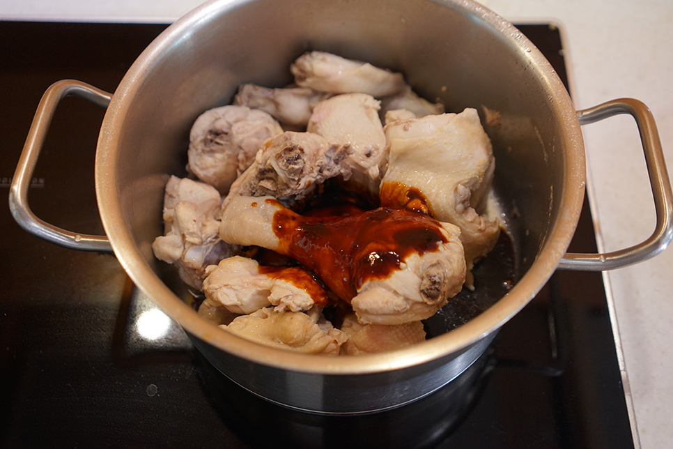 그리고 닭을 먼저 물에 데친 후, 건져내서 물을 붓고 양념과