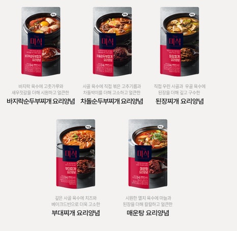 더미식에는 위의 다양한 요리양념(순두부찌개, 된장찌개, 제육볶음, 떡볶이 등등)이 있으니