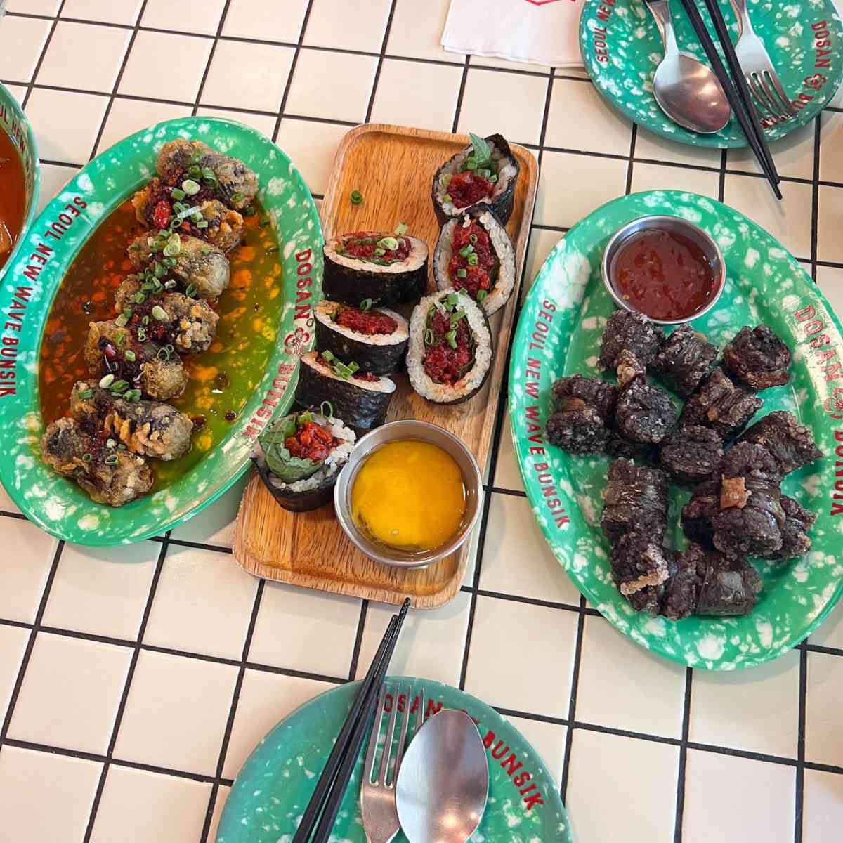 ‘도산분식’은 도산대로 초입에 자리한 뉴트로 감성의 분식집이다. 목욕탕 타일로 된 테이블, 초록 접시, 오렌지 물병까지 디테일한 분위기가 옛 감성을 자극한다. 대표 메뉴인 ‘어묵튀김도산떡볶이’는 달콤한 양념 떡볶이에 바삭한 어묵튀김이 곁들여져 옛날식 떡볶이의 매력을 살린다. 이외에도 고소한 참기름 향이 매력적인 ‘육회김밥’, 부드러운 식빵 속에 돈까스를 넣은 ‘돈까스샌드’ 등 다양한 메뉴가 있어 취향대로 즐길 수 있다.
