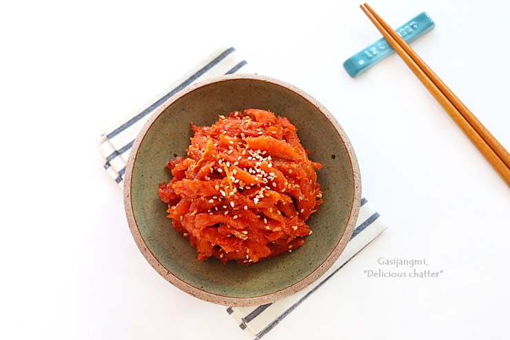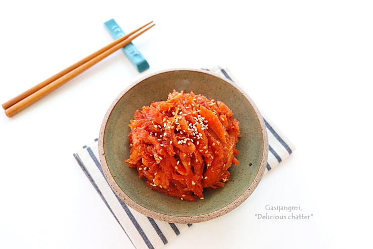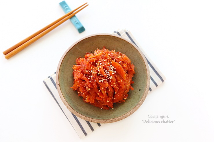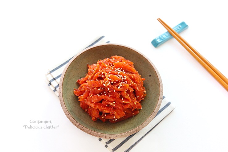 하나씩 집어먹기에도 좋은 황태채무침이에요.
