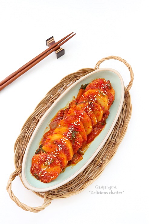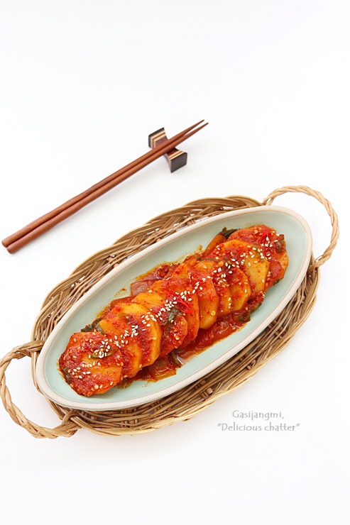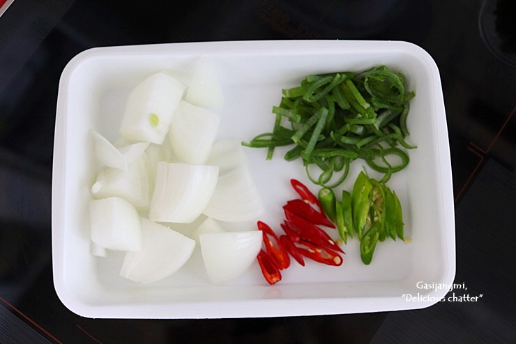 양념 : 고추장 1큰술, 고춧가루 1큰술, 간장 2큰술, 국간장 1/2작은술, 맛술 1큰술, 올리고당 2큰술,
