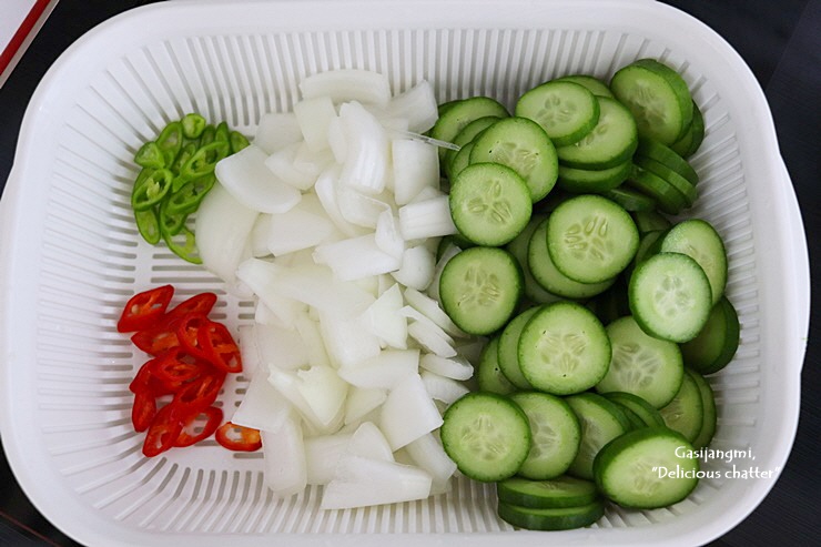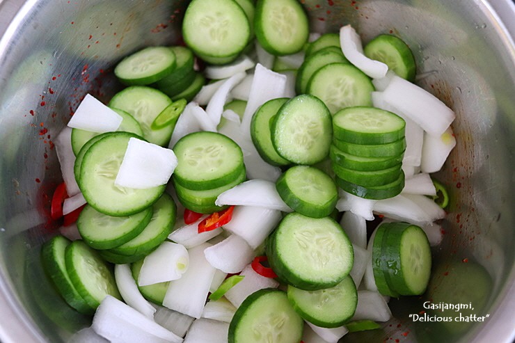 그리고, 아삭아삭 맛있는 미니오이에 양파도 넣고