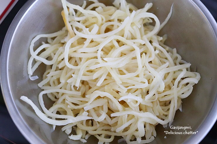 냉동실에 있었던 진미채는 쫌 딱딱한듯해 뜨거운 물을 부어 한번 샤워를 시켜준 뒤