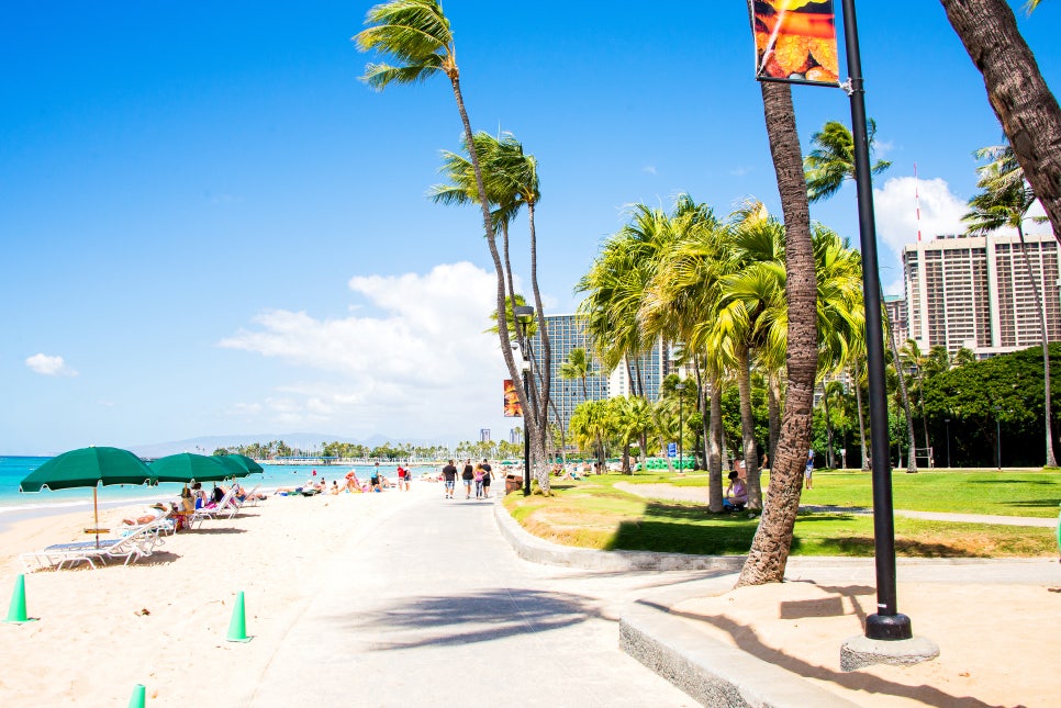 하와이 여행의 중심지인 와이키키는 끝없이 펼쳐진 해변과