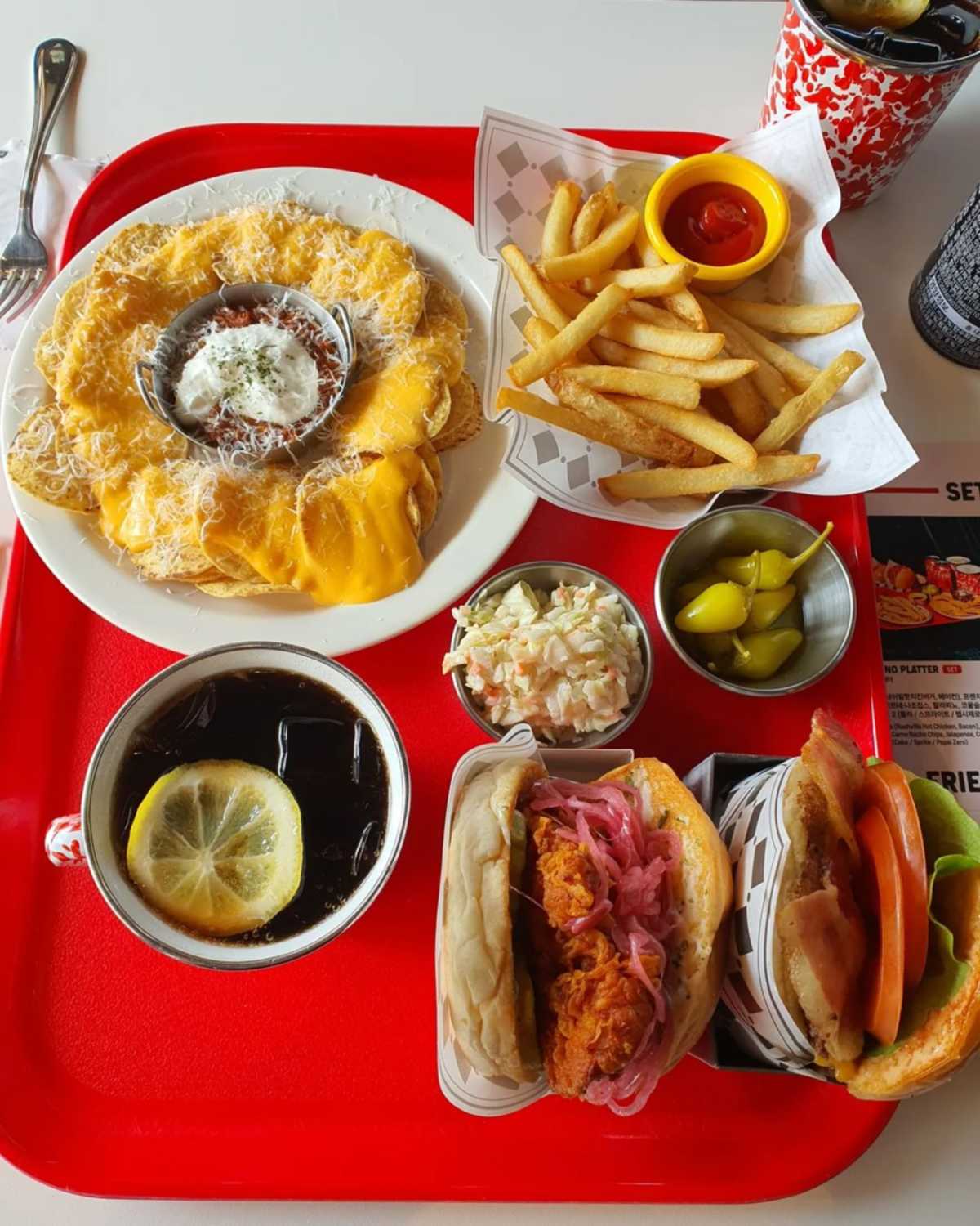 루프탑에서 즐기는 미국 정통 수제버거 종로 ‘자이온 종로점’. 이국적인 메뉴이지만 한국의 옛 골목에서 느껴지는 감성을 한껏 느낄 수 있는 루프탑에서 먹으면 힐링이 따로 없다고. 대표 메뉴는 자이온버거로 적당히 쫀쫀한 버거 번과 육즙이 풍부한 패티와 구운 양파, 아메리칸 치즈, 신선한 토마토와 로메인까지 들어가 재료로부터 느껴지는 풍미가 대단하다. 바삭바삭한 치킨 패티가 인상적인 네슈빌 핫치킨버거 또한 인기 있는 메뉴로 루프탑에서 즐기면 10배는 더 맛있게 느껴진다.