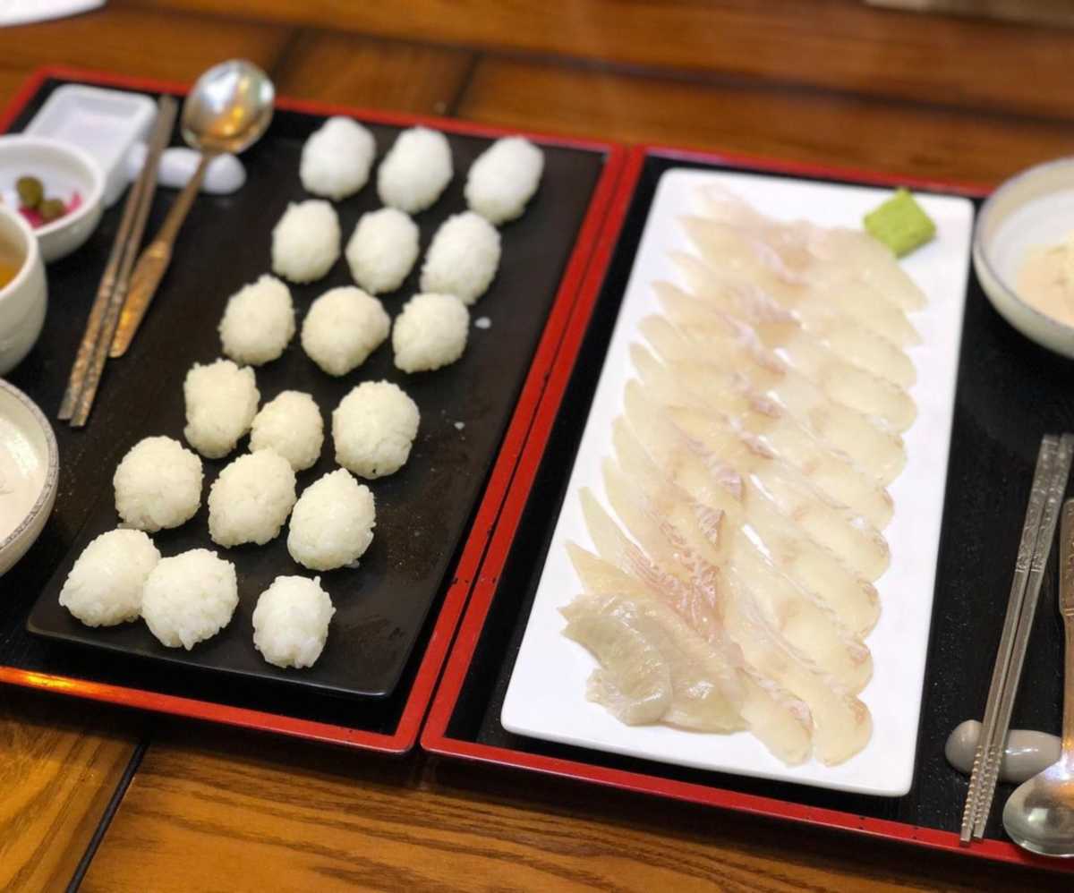 제주시에 위치한 ‘초밥군커피씨’는 1층은 초밥집, 2층은 카페로 운영되는 그림 같은 외관이 인상적인 곳이다. 예약을 해야만 맛볼 수 있는 대표 메뉴 ‘용초밥’은 방어, 광어, 부시리 중 하나를 선택해 주문하며, 커다란 초밥이 통째로 제공된다. 인증샷을 찍은 후 사장님께 다시 전하면 적당한 크기로 손질되어 나온다. 초밥은 셀프 방식으로 즐기며, 신선한 회를 그대로 먹거나 밥을 곁들여 나만의 초밥으로 만들어도 된다.