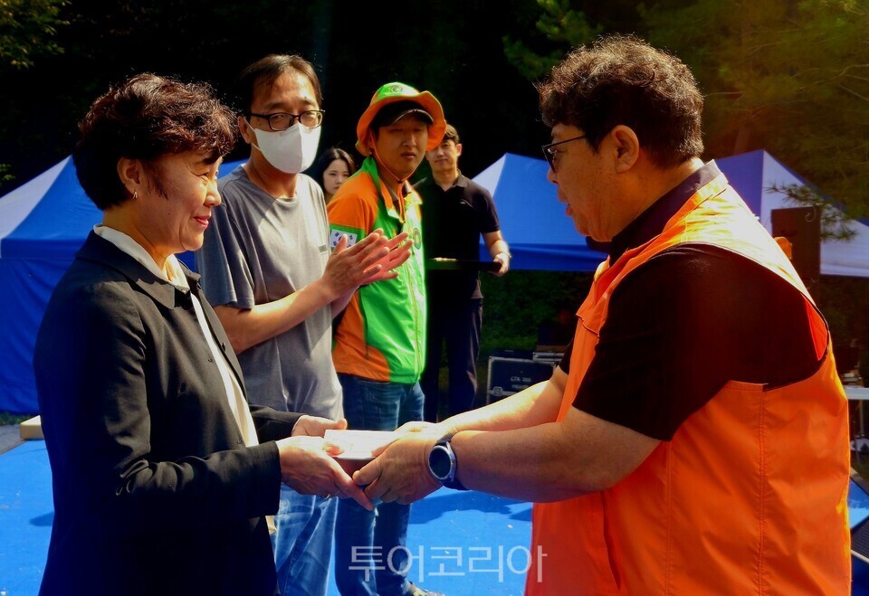 [투어코리아=유경훈 기자 ] 26일 충남 공주시 옥룡동 은계골공원일원에서 효자 향덕과 국고개 전설 이복의 효행을 기리는 ‘2025 옥룡동효문화제’가 열려 올해 새롭게 찾아낸 “효자 효부에게 표창”을 하고 있다.