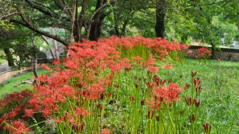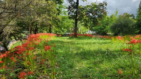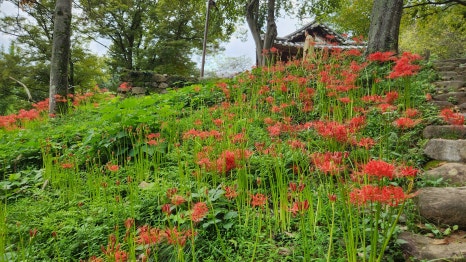아마도 이런 점 때문인지 주차장 같은 시설이 구비되지 않은 것 같기도 했어요. 다른 꽃무릇 명소들, 예를 들어 불갑사나 선운사처럼 관광객이 몰리는 곳은 주최 측에서 축제를 통해 방문객들을 유도하잖아요.