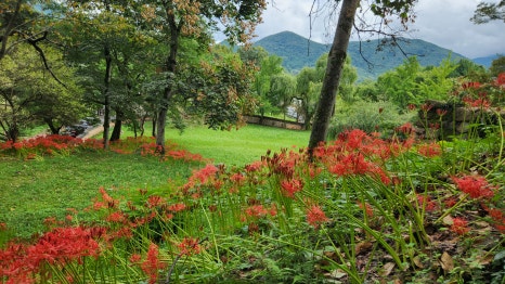 툇마루에 걸터 앉으면 귓가를 스치는 바람과 코끝에 실려 오는 꽃향기, 녹색의 정원이 주는 청량감과 창계천을 흐르는 물소리가 어우러지며 분명 나만이 아끼고 숨겨 놓고 싶은 꽃무릇 명소임을 단박에 느낄 수 있을거에요.