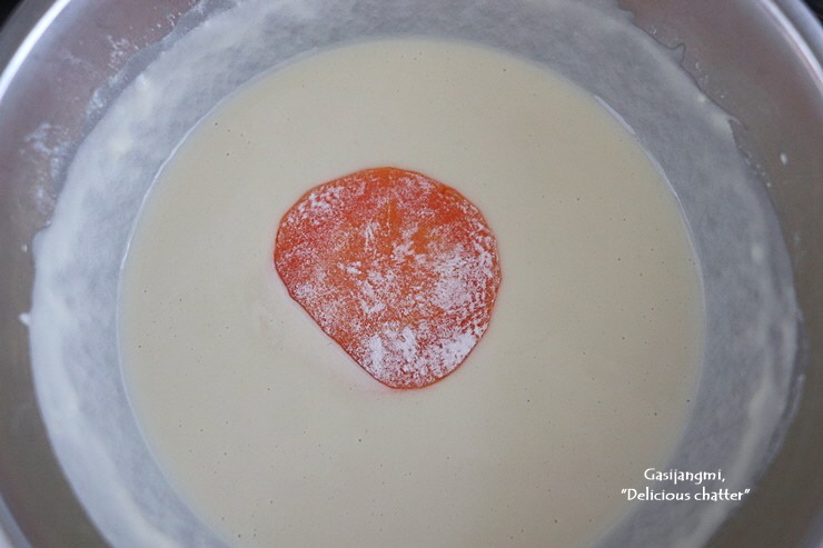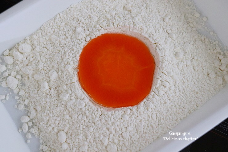 물기 뺀 당근에 쌀 튀김가루를 가볍게 입혀준 뒤