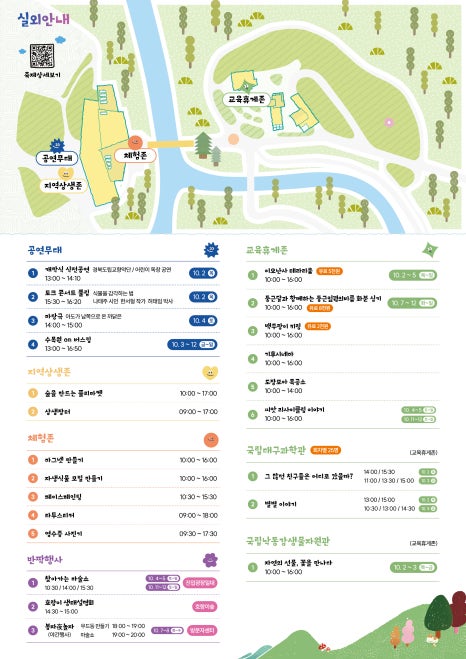 11일 간 진행되는 행사에서는 주말 버스킹 공연과 찾아가는 마술쇼, 요일별 특화 프로그램이 대부분 무료 진행되고, 교육 휴게존에서는 ‘이오난사 테라리움’, ‘둥근잎꿩의비름 화분심기’, ‘백두랑이 키링 만들기’ 등 유료 프로그램도 이어집니다.