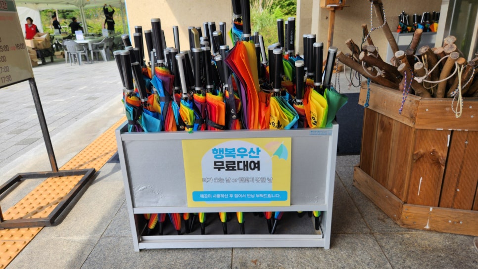 전형적인 가을 날씨로 인해 한낮에는 제법 햇살이 뜨거웠는데 방문자 센터 무료 우산대에서 가져온 무지개 우산으로 햇볕도 가리고 사진을 찍어도 예쁘게 나와서 좋았어요. 본격적인 관람 전 우산 챙기는 것 잊지마세요.