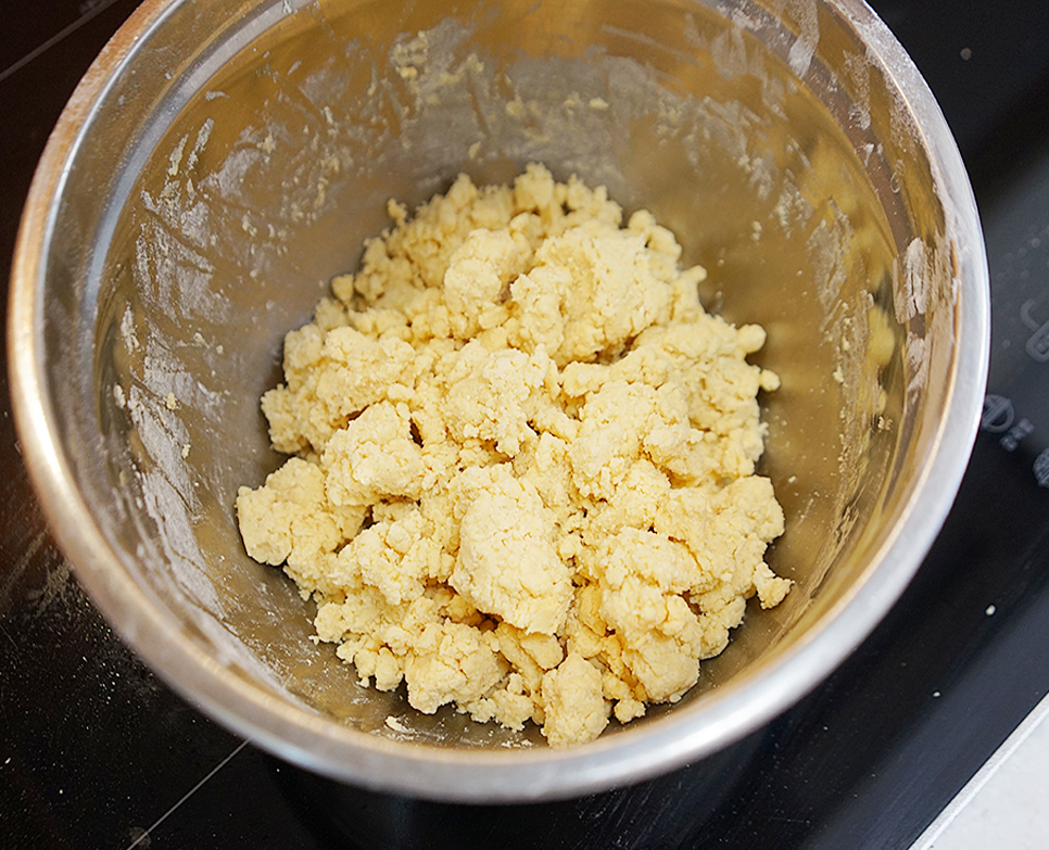 5. 손으로 문질러서 보슬보슬한 소보로를 만들어 줍니다.