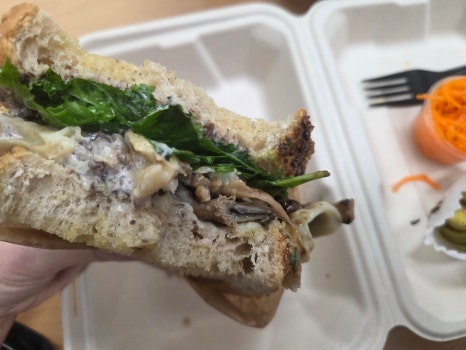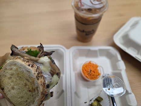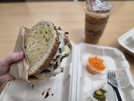 우선, 「트러플머쉬룸모짜렐라샌드위치」부터 먹어보는데,, 빵 퀄리티 무엇.. 빵 정말 맛있고요. 촉촉합니다. 버섯과 모짜렐라조합은 뭐 실패없지!!!