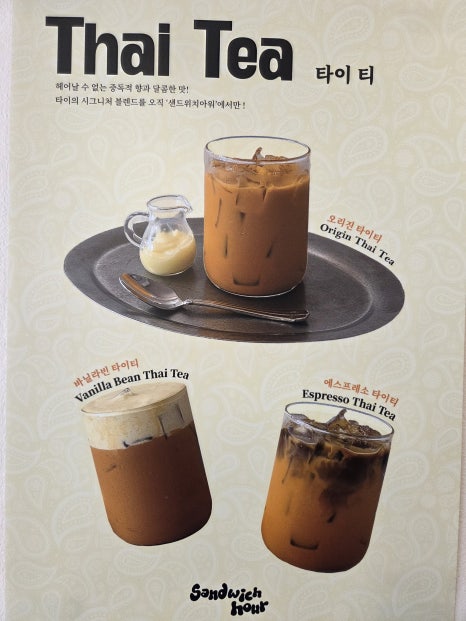 참고로, 샌드위치아워에만 있는 음료는 「타이티」종류다. 에스프레소타이티,오리진타이티,바닐라빈타이티 꼭 마셔보는것을 추천. 여기에만 있으니까.