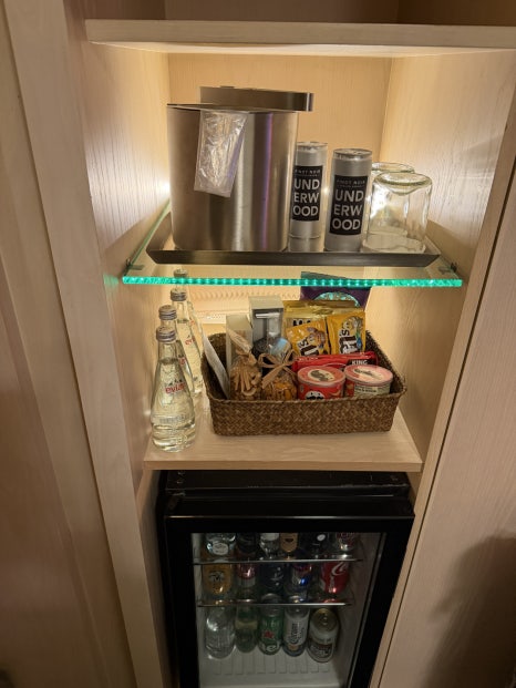 미니바와 옷장 속 기념 티셔츠 등은 모두 유상으로 판매한다. 호텔에 얼음을 가져갈 수 있는 공간을 따로 마련해 두어 얼음이 필요하면 언제든 가져오면 된다. 전기포트는 따로 제공하지 않으니 컵라면을 먹을 계획이라면 휴대용으로 하나 챙겨오는 것이 좋다. 룸서비스 요청 시 뜨거운 물을 받을 수 있으니 미처 휴대용 전기포트를 챙겨오지 못했다면 요청해보자.